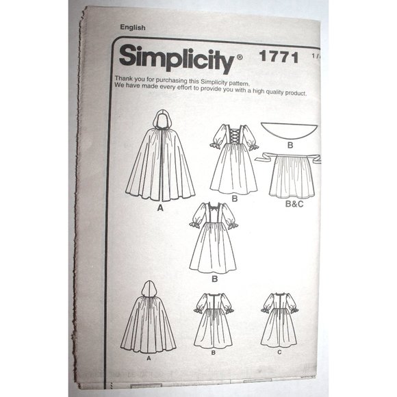 Simplicity Other Uncut Simplicity 771 A Sewing Pattern Costume For Red Riding Hood Milkmaid Cape Poshmark