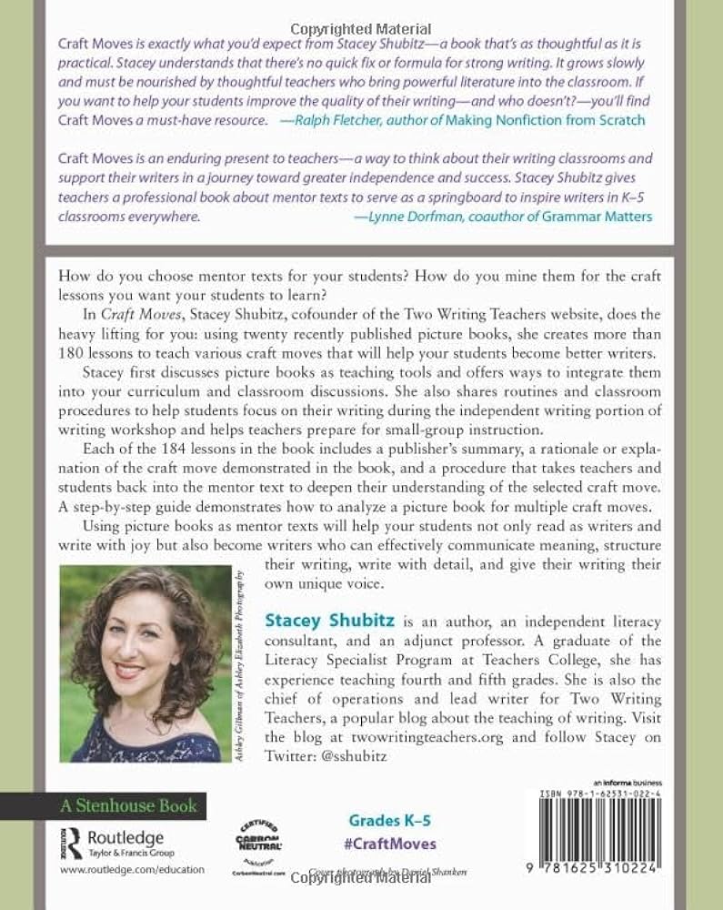 Craft Moves Lesson Sets For Teaching Writing With Mentor Texts Amazon Co Uk Shubitz Stacey 9781625310224 Books